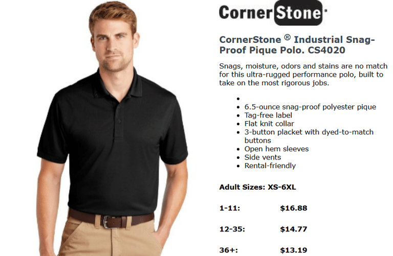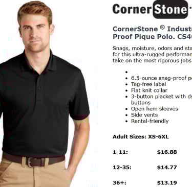$16.88 Polo+$15 logo Embroidery + One time $30 Digitize fee= $61.88 (tax no included)