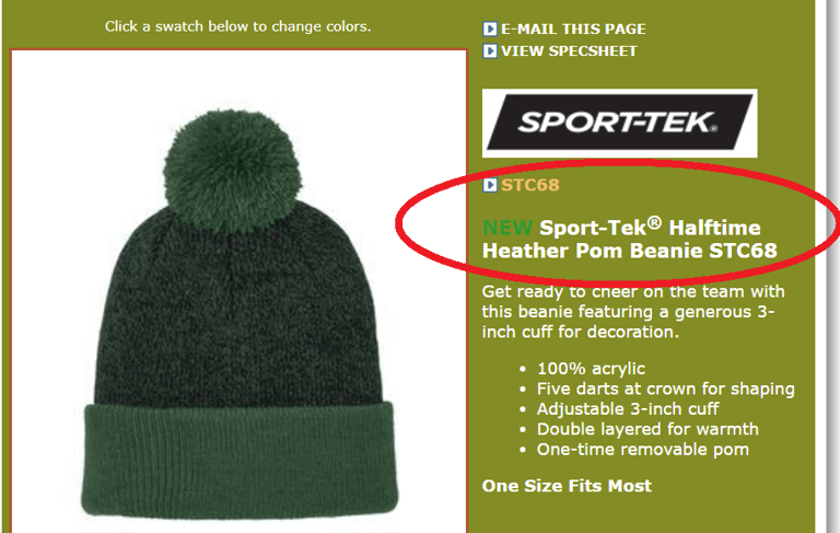 When browsing selection we can order for you, please keep a note of the item title, item # and color you would like